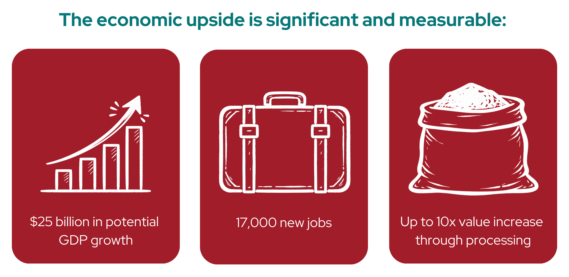 Same crop. Same farmers. Same harvest. But dramatically more value, more jobs, and more economic impact, simply because the processing happens here.