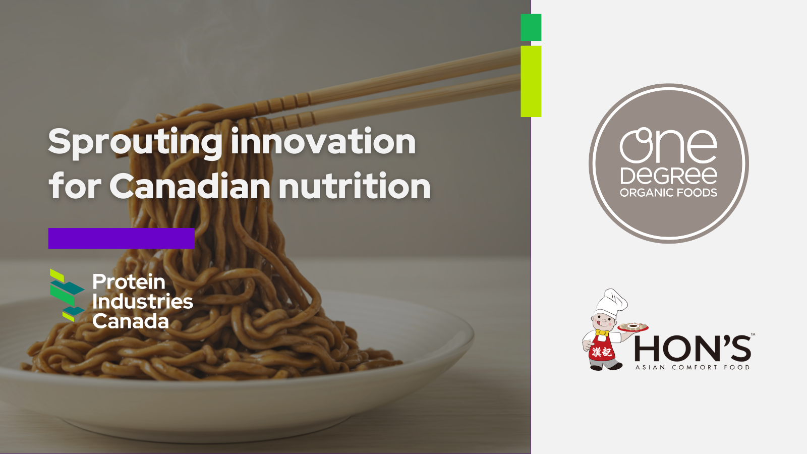 One Degree Organics and Hon’s Wun-Tun House are developing clean-label, nutrient-dense breakfast cereals, snack bars, Asian-style noodles, dumpling wrappers and other value-added products using Canadian grains and pulses—bringing protein and fibre to everyday staples of the Canadian diet.