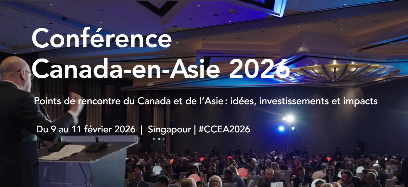 La Conférence Canada-en-Asie 2026 (CCEA 2026) est la principale plateforme permettant de mettre en relation des dirigeants de partout au Canada et en Asie pour aborder certains des défis les plus urgents – et des occasions prometteuses – de notre époque. Se déroulant au carrefour des affaires, du gouvernement, de la recherche et de l’innovation, ce rassemblement unique réunit des parties prenantes pour favoriser la collaboration, débloquer des partenariats et façonner l’avenir de l’engagement entre le Canada et l’Asie afin de s’attaquer à des problèmes réels.