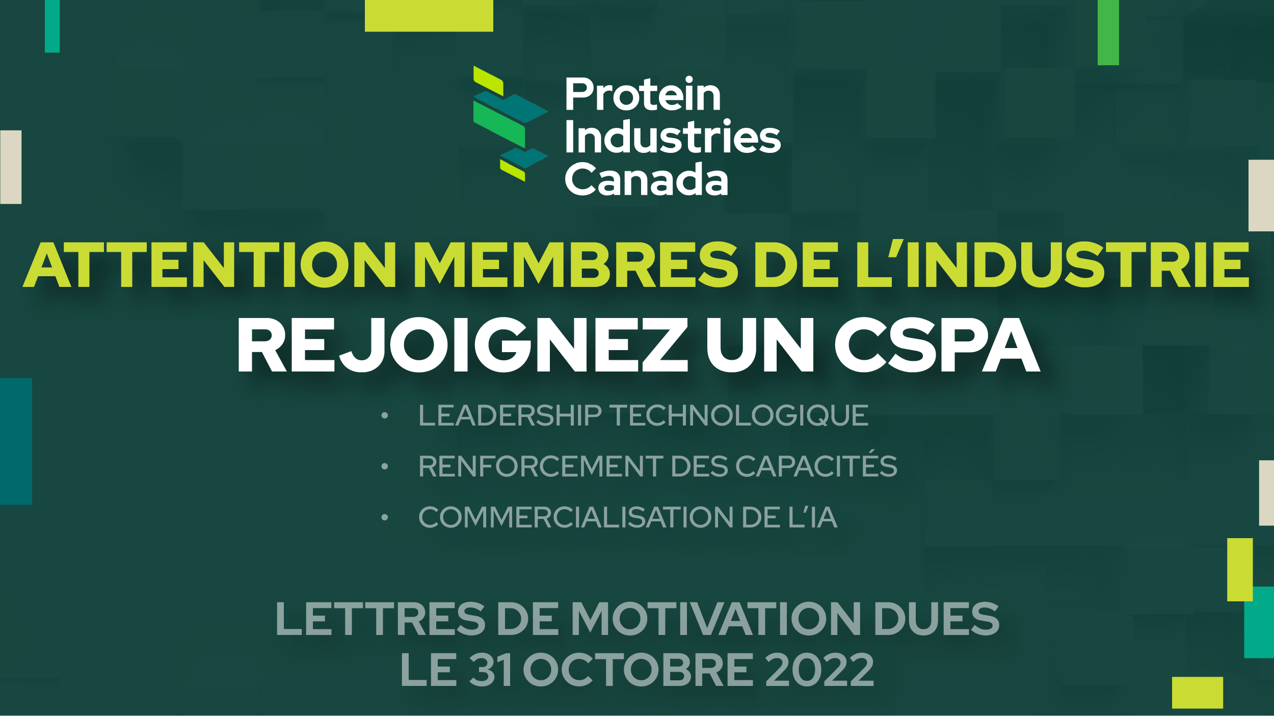 Alors que Protein Industries Canada amorce le prochain chapitre de son existence, avec cinq années supplémentaires de financement ainsi que le lancement d’un nouveau volet de commercialisation de l’IA, nous sommes actuellement en train de constituer trois Comités de sélection des projets admissibles (CSPA).