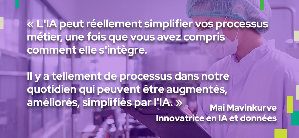 « En fait, l’IA peut simplifier vos processus d’affaires, une fois que vous avez compris comment l’intégrer, assure Mai Mavinkurve, spécialiste de l’innovation en matière d'IA et de données. Il y a tellement de tâches dans notre quotidien qui peuvent être élargies, améliorées et simplifiés par l’intelligence artificielle !»