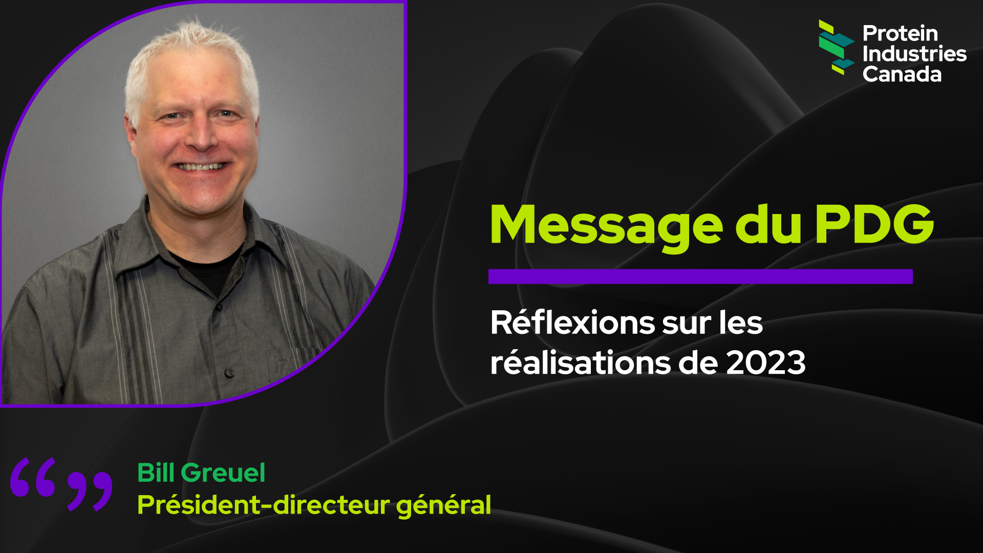 À l’approche de la période des fêtes, j’espère que vous trouverez du temps à passer avec vos amis et votre famille. Merci à tous pour votre soutien continu à Protein Industries Canada et j'ai hâte de vous connecter en 2024.