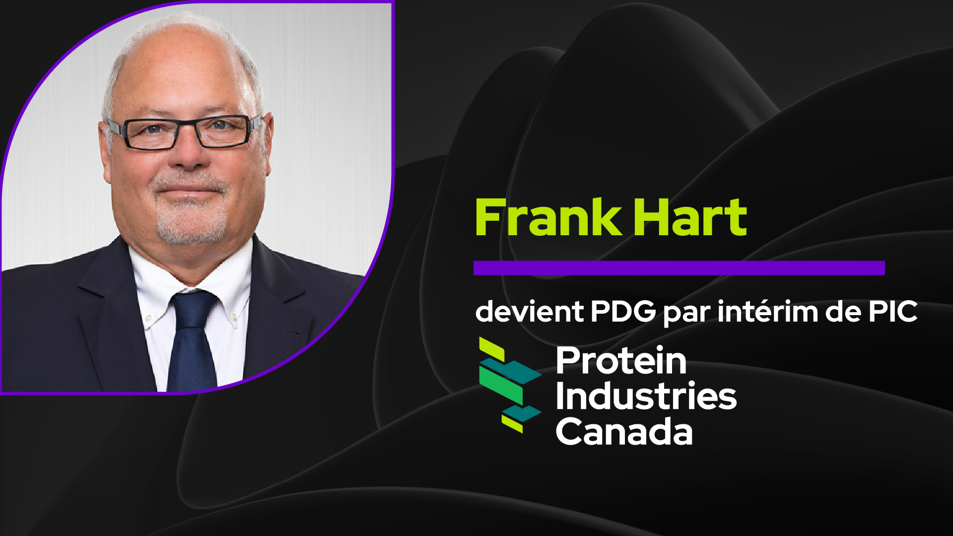 Protein Industries Canada a annoncé que Frank Hart deviendra PDG par intérim pendant que la recherche d'un PDG permanent est en cours. Bill Greuel avait précédemment annoncé qu'il quittait Protein Industries Canada à la fin du mois de juillet pour devenir sous-ministre de l'Agriculture du gouvernement de la Saskatchewan.