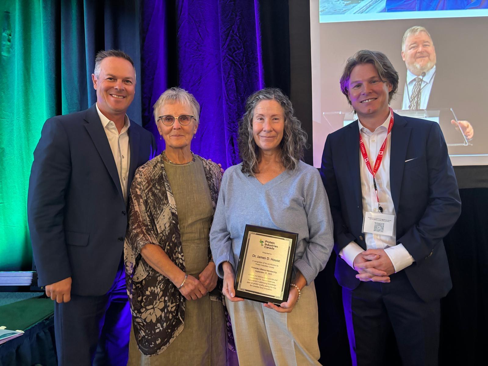 Lors du congrès annuel et de l'assemblée générale 2025 de Protein Industries Canada, le Dr House a reçu à titre posthume le titre de membre honoraire à vie pour sa contribution à Protein Industries Canada et au secteur agroalimentaire canadien. Son épouse, Aileen, a accepté le prix en son nom, et son proche collègue, le Dr Chris Marinangeli, a rendu hommage à son héritage par un discours touchant.
